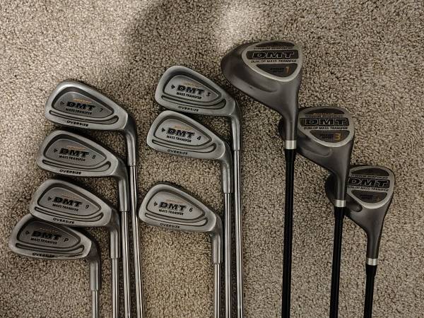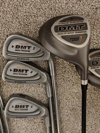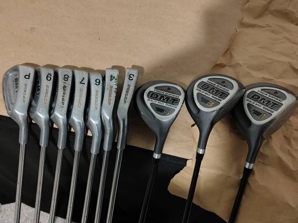 I'm selling a Dunlop DMT Oversize 10pc Golf Club Set Right-Handed (No 5 Iron). Clubs are in reasonably good used condition. All grips are in good condition. There is no 5 iron. See pictures.