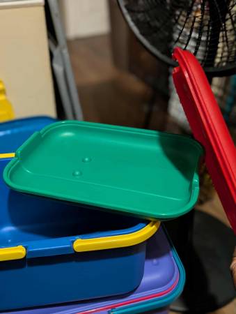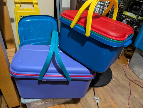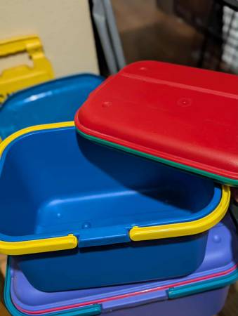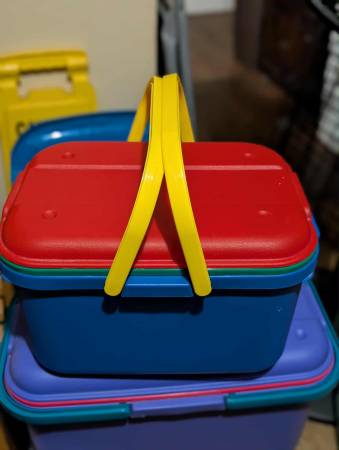 1. Eagle Craft Vintage Red/Green/Blue/Yellow Sewing Craft Tote Storage Organizer Bin with Handles $40 o.b.o.