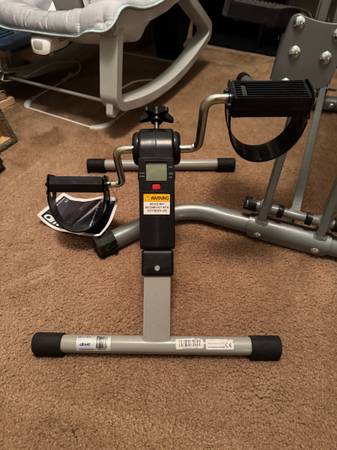 MaxiClimber is in new condition… Small pedal exerciser is new… Strong and sturdy… Was barely used… Adjustable foot peddles… Made of steel… No rust… Clean hand grips and foot peddles… Gage works on battery power… Gage works fine(pictured)… Weight capacity 240lbs… Climber will fold up… Height 7.5’H up… 5.5’H folded… All offers are considered… I meet my customers for pickups till 8pm… Delivery available… I accept cash,Venmo or PayPal…