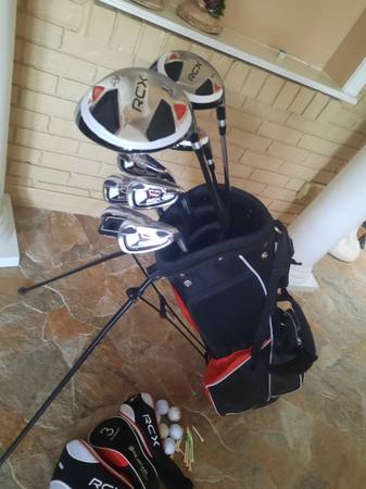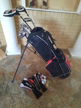Nice Ray Cook RCX golf club set, men's, right handed, standard, includes a stand golf bag, a driver, a 3 wood,a hybrid, #6,7,8,9 irons, a pitching wedge, a putter, 3 headcovers,some golf balls and tees, everything is in good used condition, great deal, firm on the price, thank you for looking:)call or text at show contact info