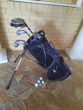 Nice USKG golf club set, junior's, right handed, all the clubs are marked 54":good for a 54"-57" tall person, includes a golf bag, a driver, a Fairway Wood, #6,8 irons, a pitching wedge, a putter, some golf balls and tees, everything is in good used condition, the grips are good, great deal for USKG brand, firm on the price, thank you for looking:)call or text at show contact info