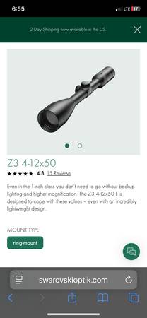 Swarovski Z3 4-12x50 rifle scope. Like new condition. Excellent scope. I just needed a 56 mm instead of the 50mm. Great Christmas or Birthday gift! Cash only and serious inquiries only. Please let...