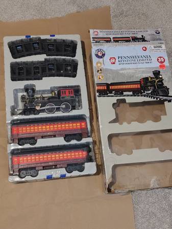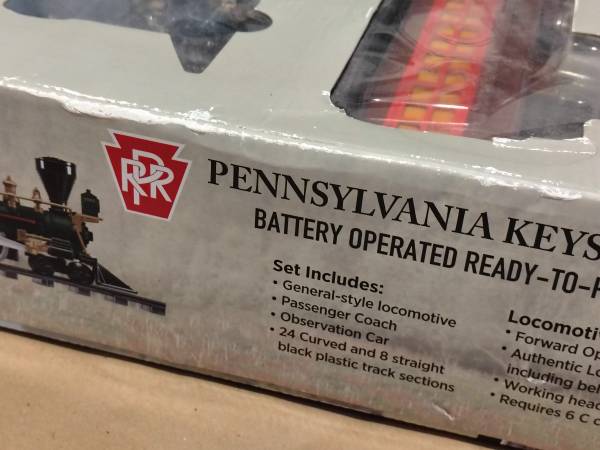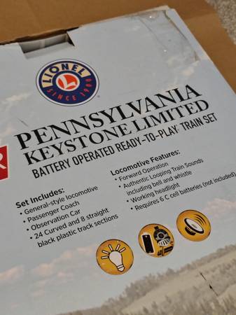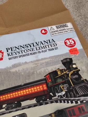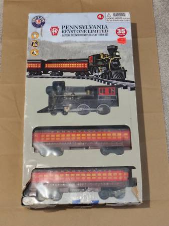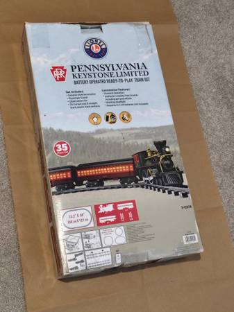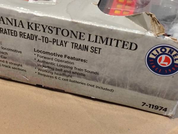 I'm selling a Lionel Train Set Pennsylvania Keystone Limited 35pc Battery Operated 7-11974. It's new, unused (distressed box / packaging). See pictures.