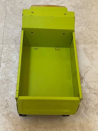 This vintage Tonka Hydraulic Dump Truck (#13200) is from the 1970s. It’s made of durable pressed steel and works well. It’s the classic light green and in nice shape. There are no missing or broken...