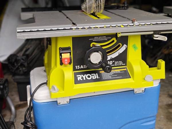 Ryobi 10 inch 15 Amp table saw . RUNS AND CUTS ATTACHMENTS PICTURED
