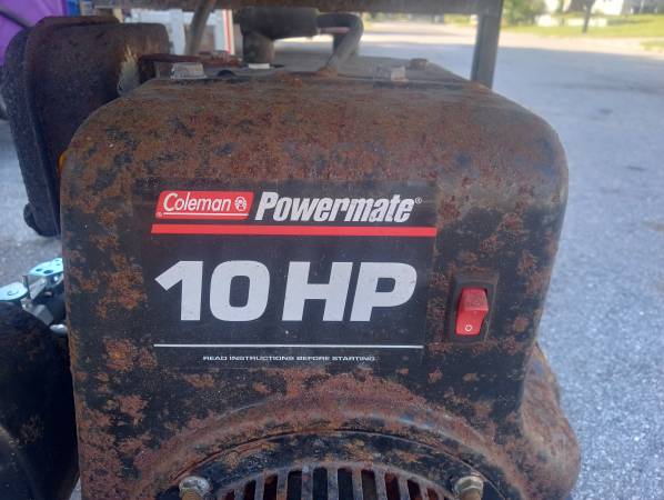 Coleman powermate 5,000 watt generator powered by a 10 horsepower engine which has a brand new carburetor and new air filter. Starts right up ready to generate $200 firm, NO TEXT OR EMAILS ANSWERED...