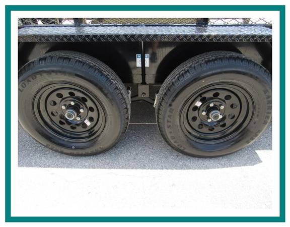 G.V.W.R. - 7000 LB 3500lb Tandem Axles 2' Mesh Sides Coupler - 2 5/16" - A-Frame Type Safety Chains - 8/0 Grade 30 w/ Hooks Jack - 3K Top Wind Frame - 2x3x3/16" Angle Crossmembers 3x2x3/16" Angle Fenders - 9x72" Diamond Plate w/ Backs Axles - 3,500# E-Z Lube Brake Axles Suspension - Multi-Leaf Spring w/ Equalizer Tire - ST205/75R15 Load Range C Wheel - 15" 5-Bolt White Spoke Deck - 2" Pressure Treated Pine Lights - L.E.D. Stop, Tail, Turn, & Clearance Elec. Plug - 7-Way RV Style Finish - Super Durable Powdercoat