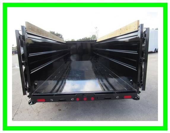 15,400 lb. G.V.W.R. 7,000 lb. x 2 G.A.W.R. Demco EZ Latch Adj. 2 5/16" Ball Coupler Safety Chains 2 -Forward Self Adjusting Grease- lube Brake Axle (7,000 lb.) 1-Hydraulic Jack (12,000 lb.) 6 Leaf Slipper Spring Suspension 4 - 16" Black Mod Wheels 4 - 235/80R16 Radial Tires (3,520 lb) LRG Electric Breakaway Kit w/ Charger DOT Reflective Tape 1/8" Treadplate Steel Fenders Lockable Full Tongue Toolbox (Houses Battery, Pump + Tools) 2 - Way Gate (Barn Doors & Spread Gate) 6 6 Slide in Ramps w/ Holders 4 - D-Rings (Welded inside the Box) 40� Dump Pitch 12VDC Hydraulic Pump with power up/power down & gravity down 5x17 Hyd.Cylinder w/Scissor & 5x 21 on 16 12' Control Cable with 3-Button Control Spring Arm Crank Tarp Kit 8" x 10 lb. I-Beam Frame & Tongue 3 Channel Crossmembers 16 oc 7ga. Steel Bed 83" Wide Bed 7ga. Steel Bed / 10ga. Steel Sides 48" High Sides DOT Approved Flushmount Lifetime LED Lights Double Insulated Harness w/Cold Weather Cord 7-way Board Brackets with 2x6 Treated Boards Stake Pockets Sand Blasted, Acid Washed, Powder Coated Group 24 Deep Cycle Battery Ultra Low 24"- 28" Deck Height (24" with Drop Axle) 110V Integrated Trickle Charger Industry Leading Axle and Structural Warranty ***See Warranty Guide*** Spare Tire Mount Driver Side Monster Step Rear Support Stands Scissor Lift GN Option Equipped with 2 Jacks GN Equipped w/Lockable Front Toolbox