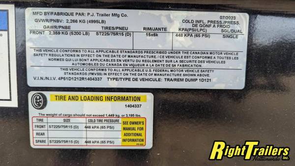 D5-8 7K DUMP - 1 EA 5200 LB DEXTER AXLE (Elec Brake)Forward Adjusting 225/75R 15 Tires. 2" Forged Coupler, 18" Dump Sides, Barn doors, Jack Drop Leg 7k, Lighting LED 4 - D- Rings 3" Weld On, Hoist w/Standard Pump Standard Battery Wall Charger (3 Amp). NO TARP