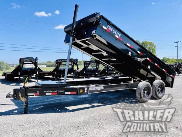 Up for consideration is a Brand New Model 7'x16' Tandem Axle, Bumper Pull, 3 Stage Telescopic Cylinder Dump Trailer.