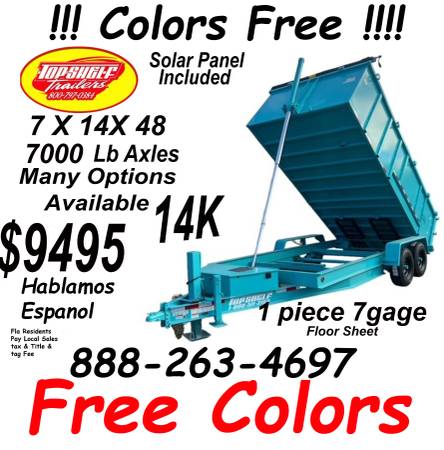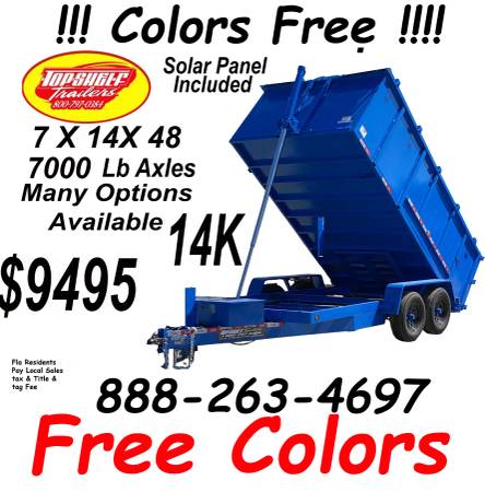 New 7’x14’ bumper pull dump trailer w/ 48” sides, 14k gvwr