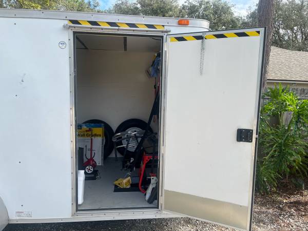 6X12 ENCLOSED TRAILER RAMP GATE SIDE DOOR MADE BY DIAMOND CARGO = SET UP FOR MX RACING DIRT BIKES BUT CAN BE USE FOR OTHER BIKES OR LANDSCAPING ETC . EXTRAS INCLUDE CONDO CHOCKS - INSULATED ROOF -SHEVLES - MANY TIE DOWN POINTS -ROOF VENT - LIGHTING INSIDE -SPARE TIRE- BUDDY BEARINGS - CARGO BOX UP FRONT -NEW LIFT JACK WITH WHEEL - TIRES ARE IN GREAT SHAPE - NO LEAKS- 6FT INSIDE HIGHT -READY TO GO NOW HAVE REGISTRATION IN HAND EASY TO TOW ONLY REASON IM SELLING IS GOT A BIGGER ONE *** MIGHT BE UP FOR A TRADE FOR A NICE HONDA CR 125R OR YAMAHA YZ 125 NO JUNK PLEASE *** $3350.00 OBO OR MAYBE TRADE. show contact info