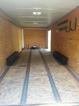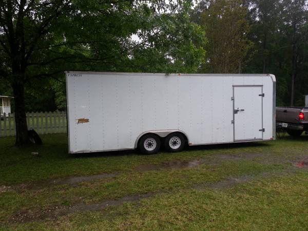 8' x 24' Enclosed Hauler with Ramp Door & Side Door, rear ramp door opening 7'8"W (92") x 6'2"H (74"), Side Door 44"W x 72.5"H, inside dimensions 8'1"W (97"), between wheel wells 6'11"W (83") x 6'9"H (81") x 23'8"L, 12V Inside Light, Dual axles, Electric Brakes, 2 5/16" receiver, round 7-blade hookup for the lights, Weight--2800 lbs, GVWR-9990 lbs. RENT FOR $150 daily (NO MILEAGE FEES)