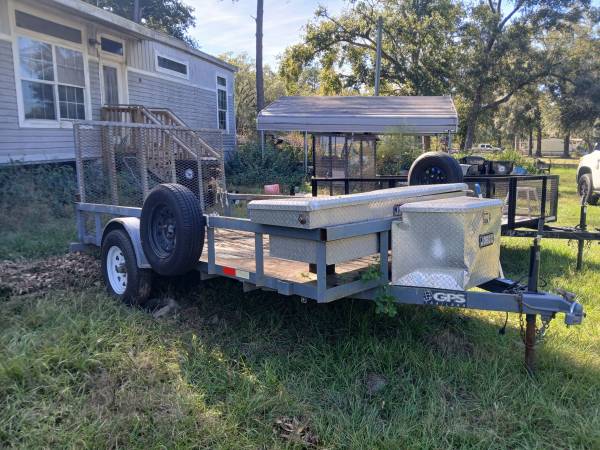 This is a Gray 2019 GPS 6' x 12' Utility Trailer. It has (2) toolboxes as it was used for work at one time. It also comes with a spare tire. GPS Trailers out of Thomasville, GA makes a well built heavy duty trailer made to last. $1,400.00 obo. Remember folks if you don't ask the answer will always be No.