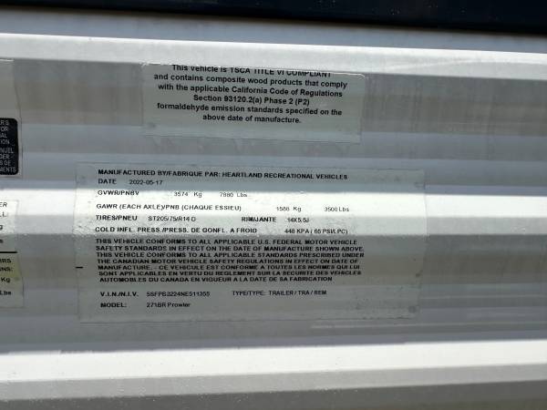 For Sale: 2022 Heartland Prowler 271BR – $22,000 OBO or TRADE (pair of jet skis)