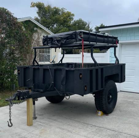 Heavy duty trailer made of aluminum. Bought it directly form DOD. Anything can be built on top of this trailer; it was made to support the weight of heavy ordinance for tanks and be towed by a Humvee. For those who can have access to guy from the government, this is your chance. I bought it to put a military shelter on top of it, but I got the wrong size shelter, and it does not fit on it. The shelter meant to go on top of it as a mobile command is a S-280G and I have the bigger one GSS-1497A.