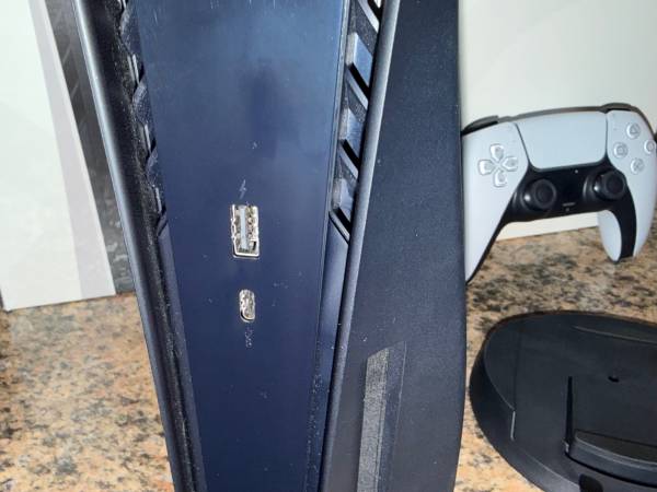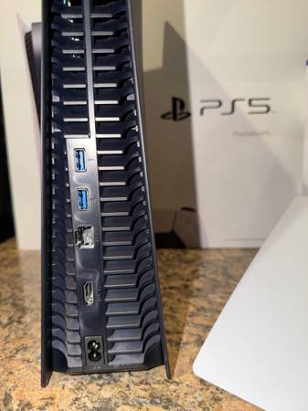This PlayStation 5 has been GENTLY used and is in IMMACULATE condition. It was purchased directly from Sony along with the OEM black PS5 faceplates. All original packaging and materials included. The original USB cable and HDMI cable were never even used. Console includes a BRAND NEW controller and also the OEM original white faceplates, so if you wanna look like a dork and have a "white" PS5, go for it! If you check the pics you can also see a photo with FLASH showing that there are NO SCRATCHES AT ALL on the piano black face of the console, particularly where the USB A and USB C ports are located.