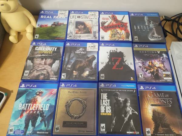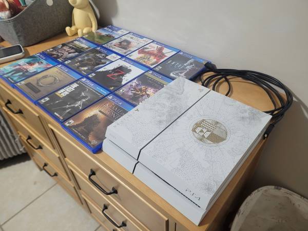 Includes: Destiny PS4 Power cord Hdmi cord Games Included Games: Destiny (The Taken King) Call of Duty WWII Battlefield 2042 Game Of Thrones Jurassic World Evolution The Elder Scrolls online The...