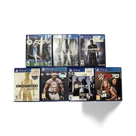 PS4 Slim 500 GB with 7 games (they are all on the picture) + all cables (controller charger, HDMI cable, power cable) and one controller.