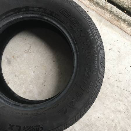 M+S 215/70R16 100S Almost like new Continental Cross Contact LX Treadware 680,Traction A, Temperature B Only one tire is available.