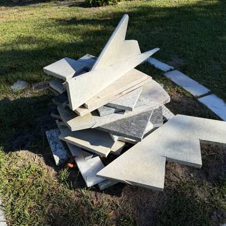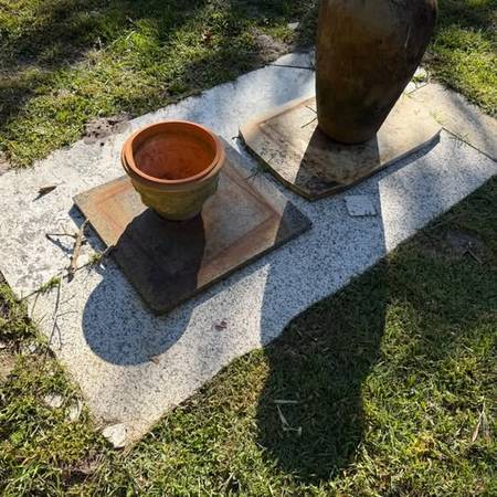 Various pieces of marble and granite slabs and off cuts. Must take all. Flower pots NOT included. Moving forces give-a-way.