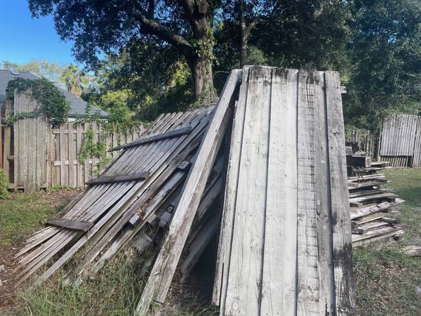 Free 8' tall wooden fence- board on board - free stuff - craigslist